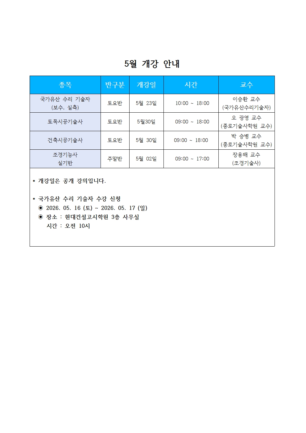 Á¦¸ñ 5¿ù °³°­ ¾È³»
