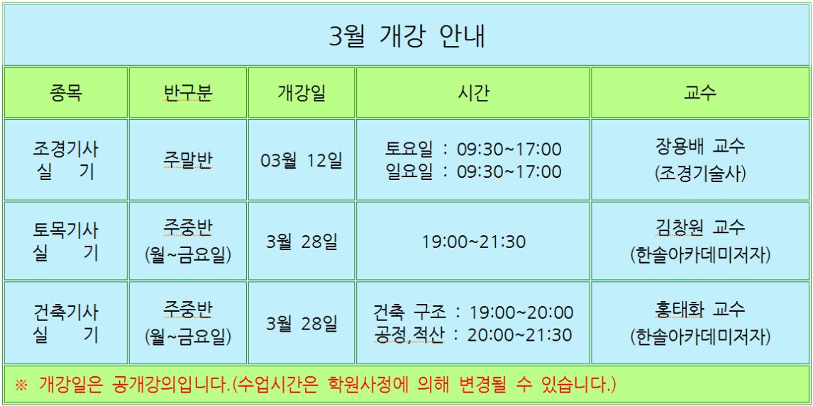 Á¦¸ñ * 3¿ù °³°­¾È³» *