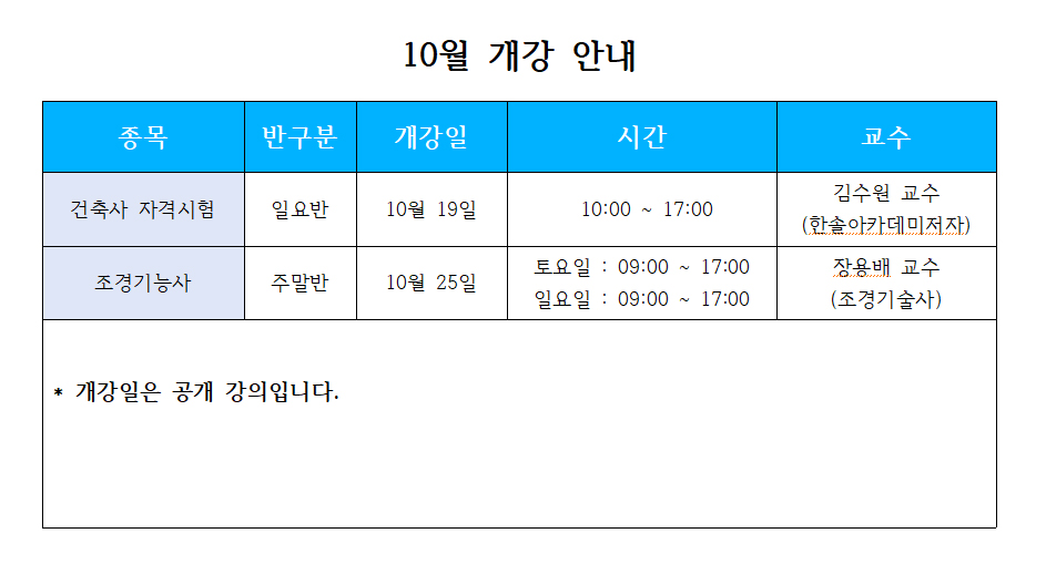 10¿ù °³° ¾È³»