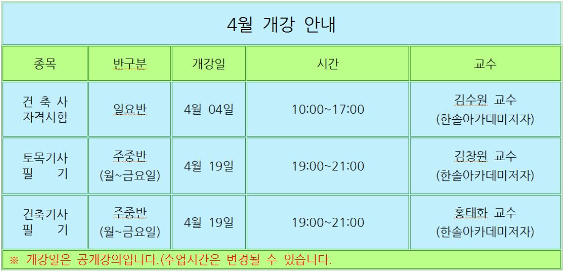 Á¦¸ñ * 4¿ù °³°­¾È³» *