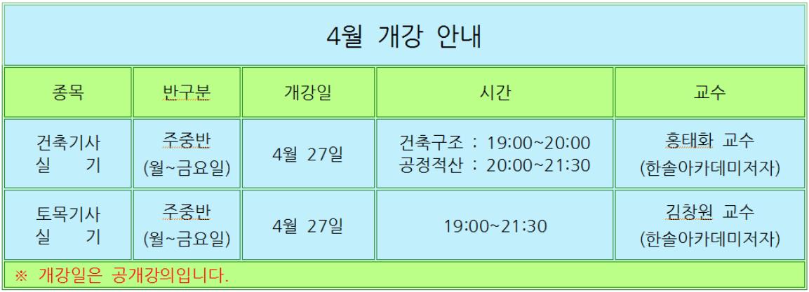 Á¦¸ñ * 4¿ù °³°­¾È³» *